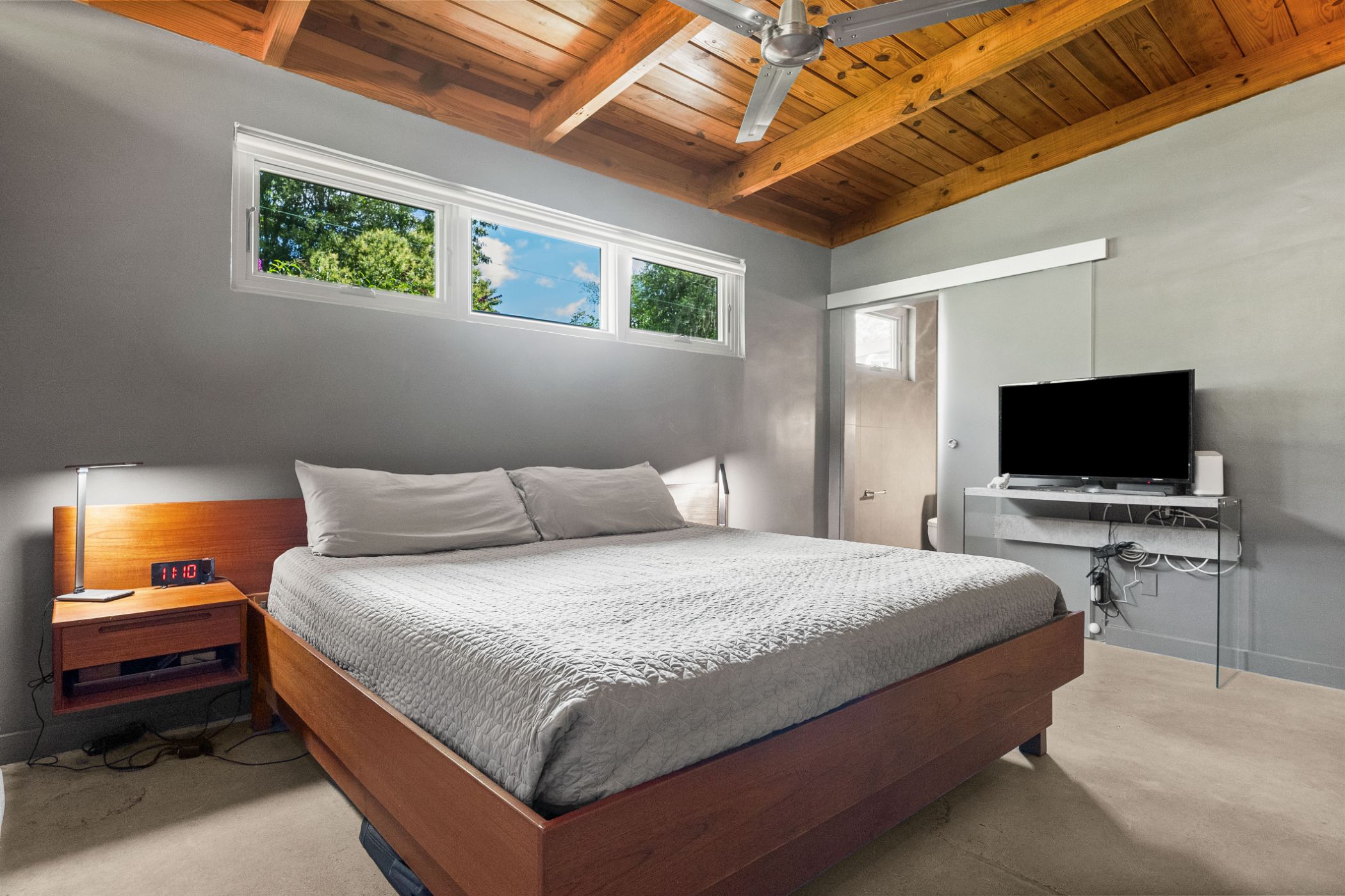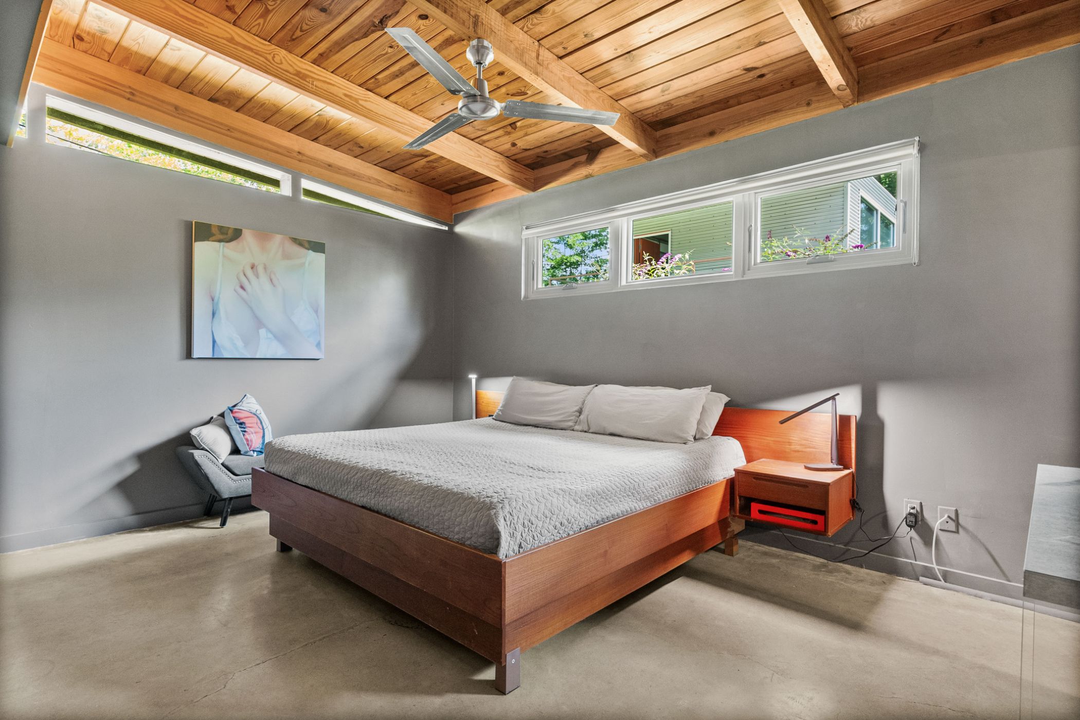 Located next to the bike trail in Magnolia Park, a beloved neighborhood named to The Georgia Register of Historic Places in 2022, this home offers the sophistication of California's most iconic modernist homes. Features include exposed beams, polished concrete floors, a striking wood-burning fireplace, and a sleek European kitchen with premium appliances. Expansive walls of glass and wide openings dissolve the boundaries between indoors and out, connecting the living spaces to a private retreat with a shimmering saltwater PebbleTec pool, lush courtyard, and fully fenced backyard.